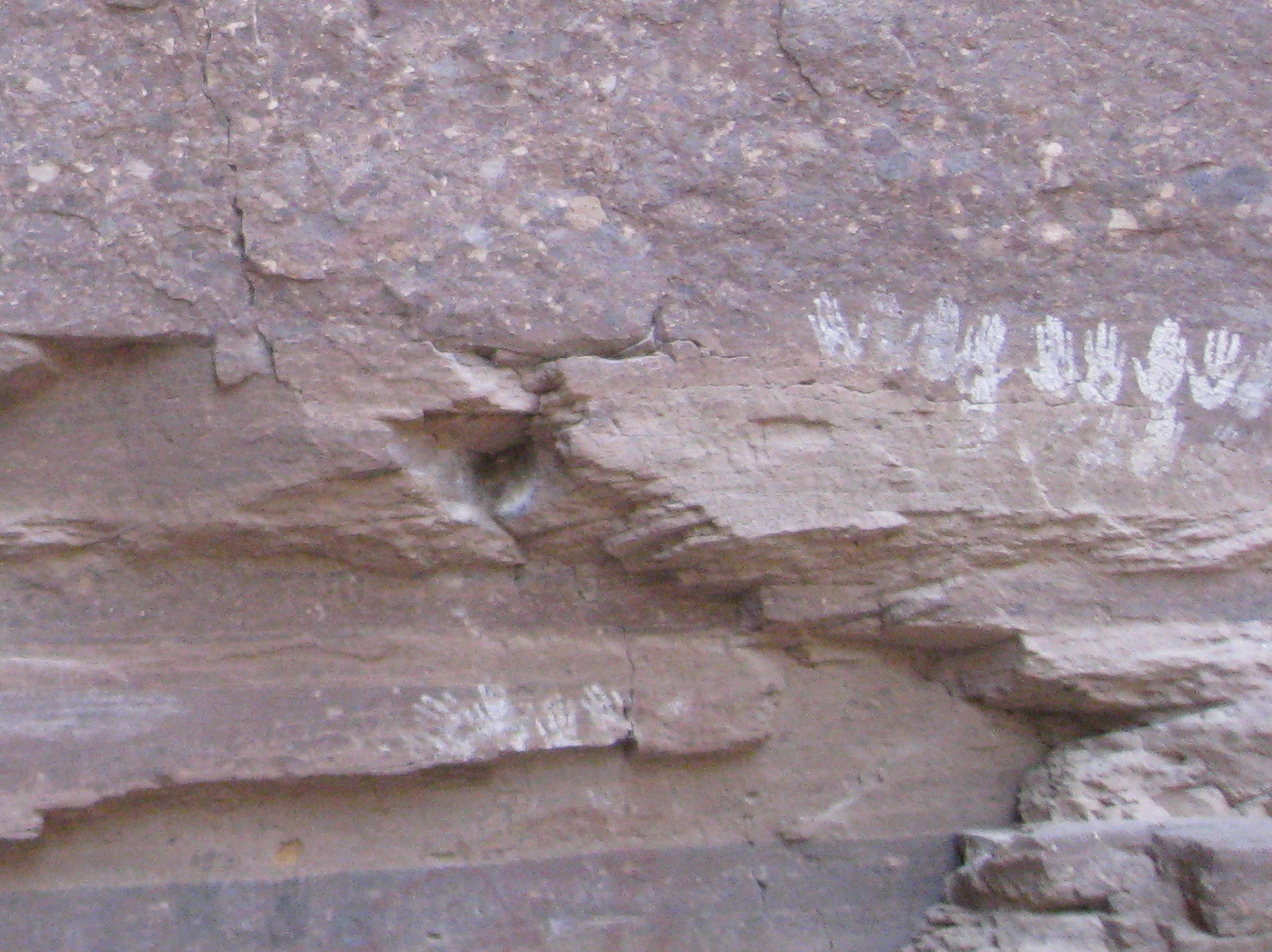 Middle photo, cave paintings at La Trinidad site, Baja California Sur.