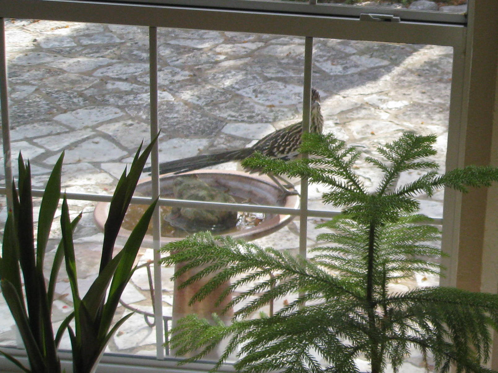 And not this one either, shown below, who perched on the birdbath and peered at me through the window of our dining room at home one morning in 2011.
