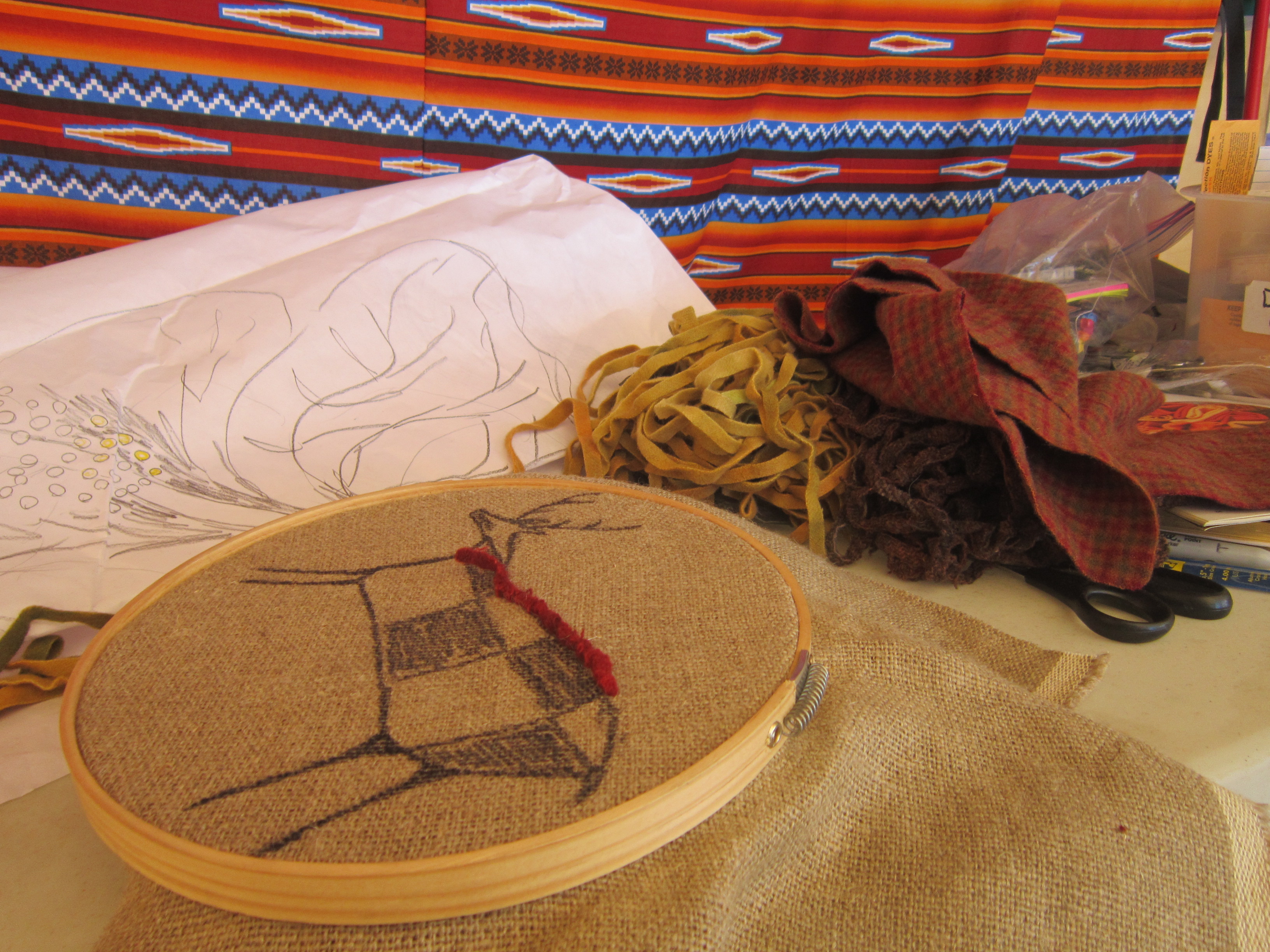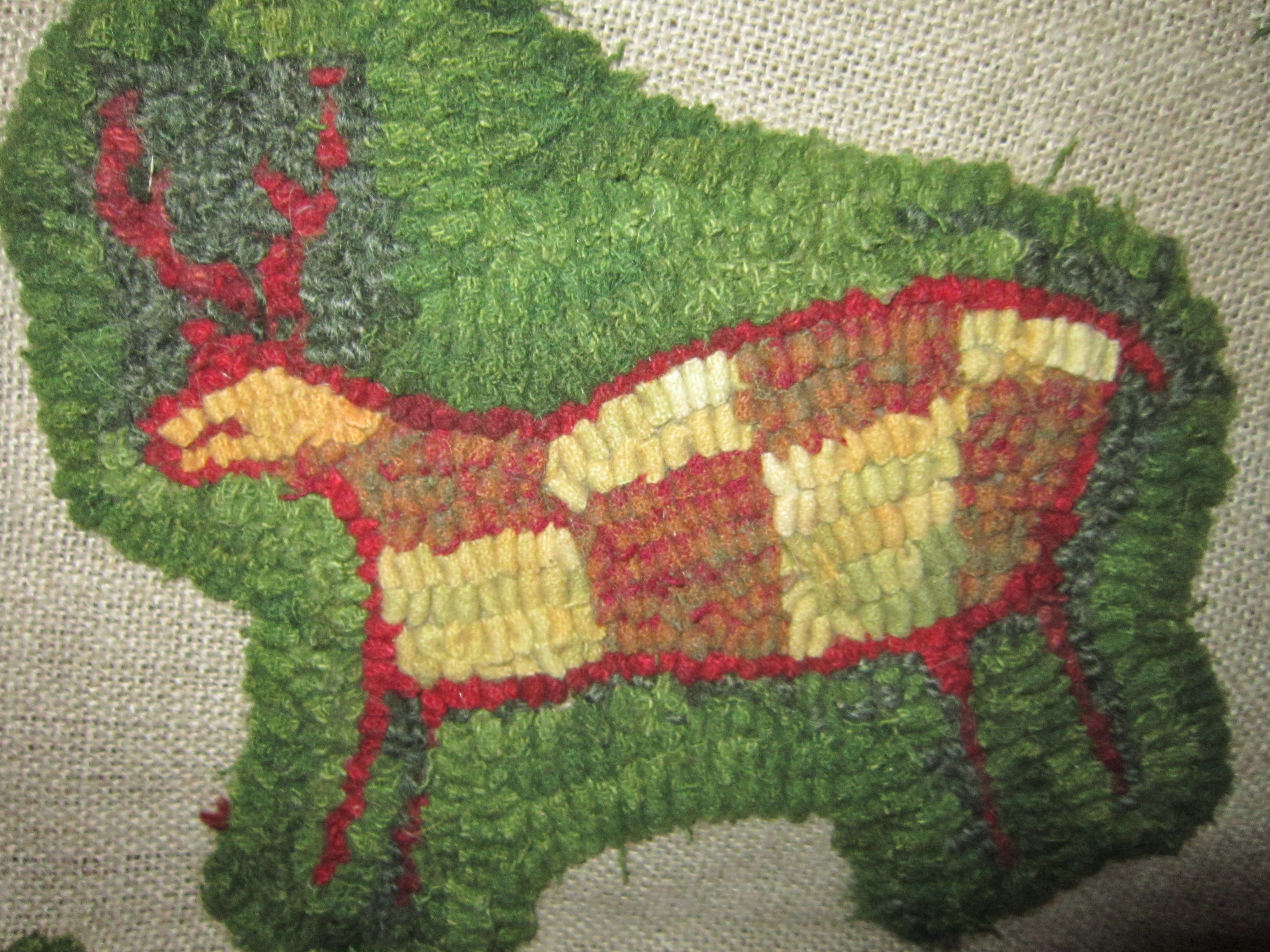 When friend Heather Horsfall urged me to try rug-hooking and to create my own design to represent something meaningful to me, I thought of this deer and drew its form on linen backing to begin a pillow front.