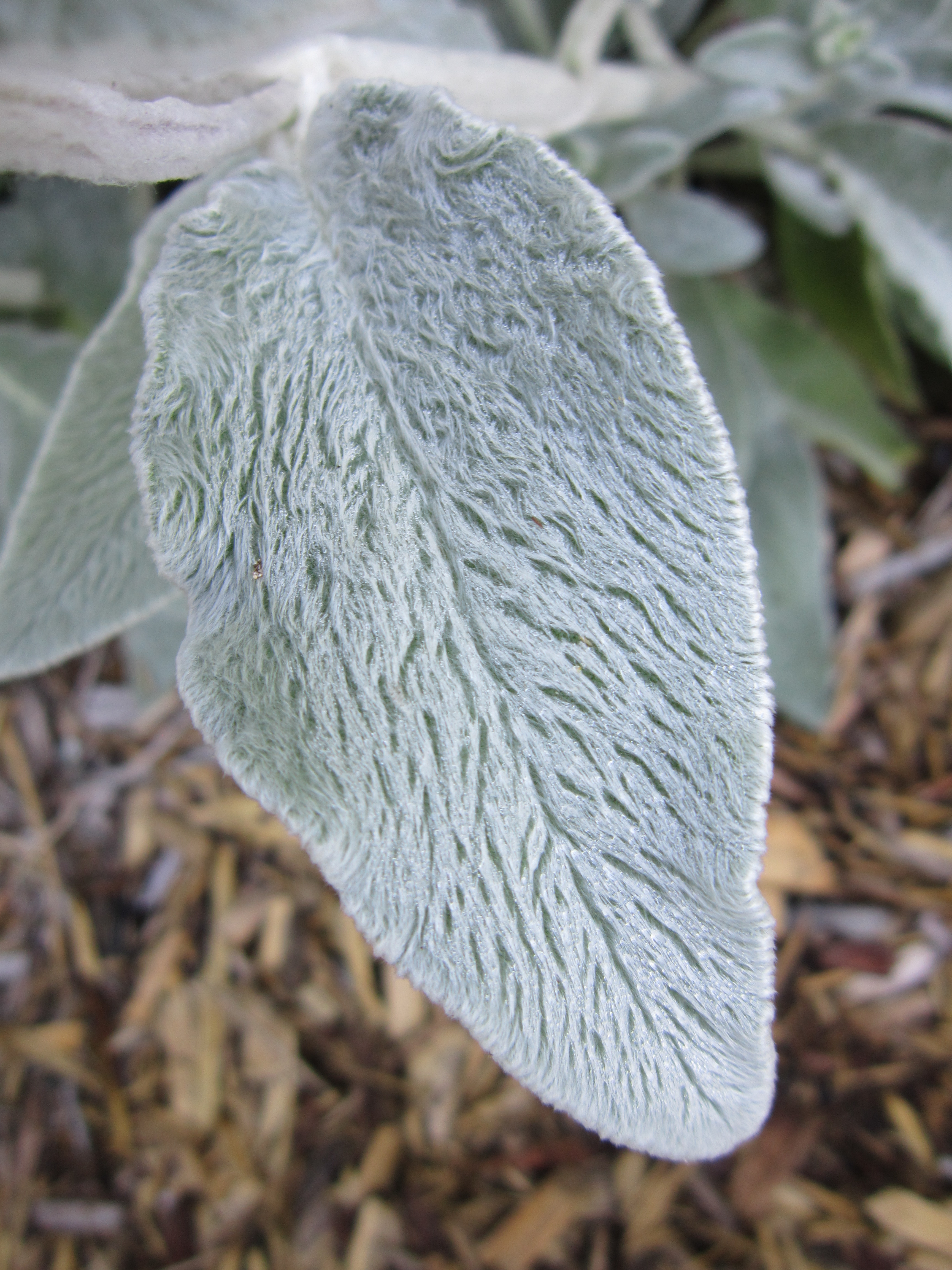 I can almost feel the remembered touch of my childhood companion, a pet lamb named Woolybritches, when I see this lamb’s ear leaf in the garden: